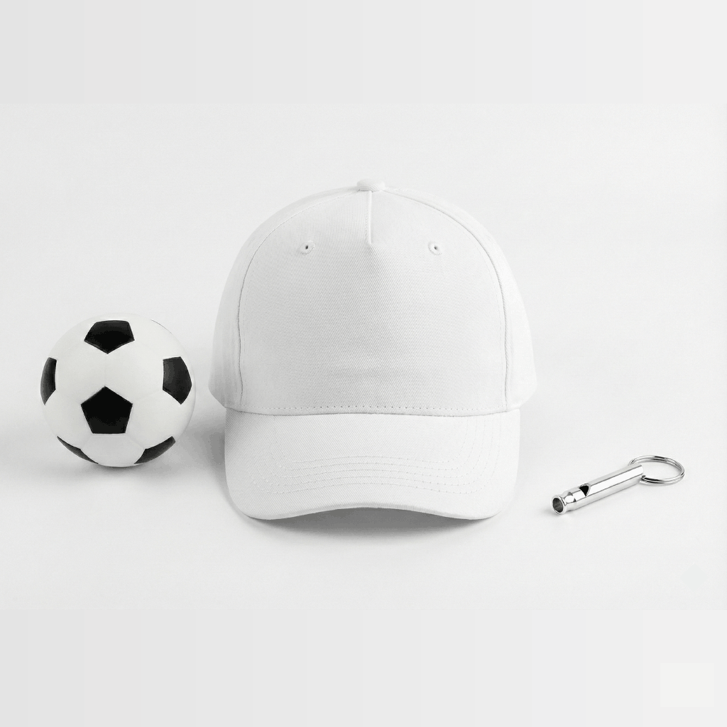 Kit Fan Mundialista 2026: set promocional ideal para regalos corporativos con pelota antiestrés, gorra Gandalf y silbato metálico personalizables.